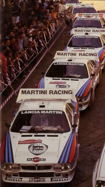 Falando em parque fechado, bacana demais essas imagens de 1983 com o Team Lancia / Martini reunido, e todos os fantásticos Lancia 037 enfileirados. Acima parece que após uma etapa, e abaixo nos bastidores acertando os carros e fazendo as manutenções necessárias. Não sabia que eram tantos exemplares desse carro, como não devia ser acompanhar uma etapa dessas ao vivo?